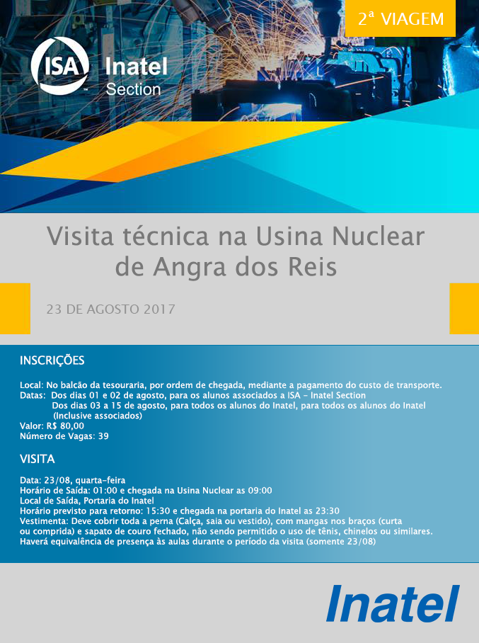 | Agosto | Visita Técnica para Usina Nuclear de Angra dos Reis agendada para o dia 23/08/2017 e ELEIÇÃO ISA |