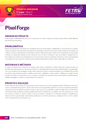 O Pixel Forge foi desenvolvido como uma solução interativa para o ensino de Computação Gráfica e Multimídia, focada em