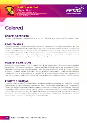 O projeto Colored surgiu em 2024, em uma escola técnica, com o objetivo de ajudar pessoas daltônicas a identificar cores.